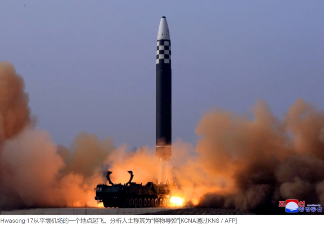 2022年3月,朝鲜自2017年以来首次试射洲际弹道导弹,打破了其自行暂停测试远程导弹的规定。朝鲜声称这种导弹是火星-17,这是该国迄今为止最大的洲际弹道导弹,估计射程为15,000公里(9,321英里)。然而,韩国军方表示,测试的导弹要小得多。