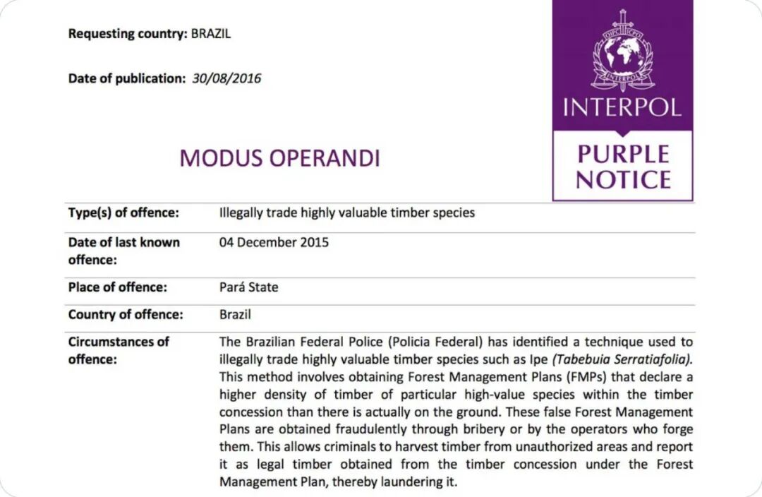 国际刑警组织紫色通知:发出紫色通知是为了搜索或提供有关犯罪分子使用的作案手法(犯罪的具体模式)、物体、装置和隐瞒方法的信息。这些通常是指犯罪集团或有组织的帮派。过去,紫色通知也被用来跟踪与偷猎和海盗有关的船只。