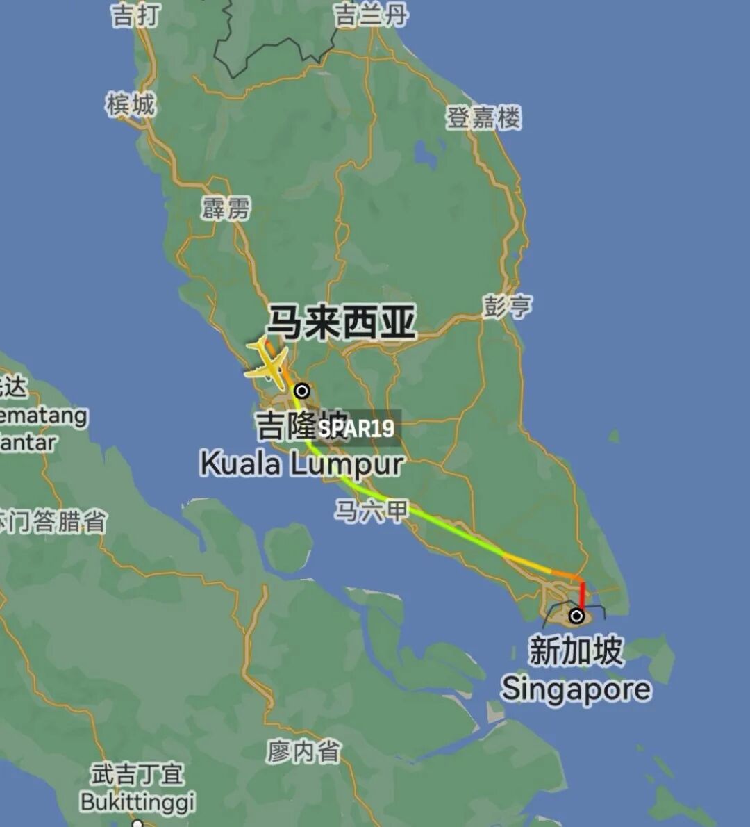 8月2日佩洛西于09时39分从新加坡拜耶里空军基地起飞,于北京时间10时32分抵达马来西亚梳邦机场。