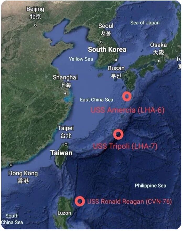 另外该地区的海军部署包括上周停靠新加坡后返回南中国海的航空母舰罗纳德·里根号,冲绳附近的两栖攻击舰的黎波里号,以及前沿部署到日本佐世保的两栖攻击舰美国号。