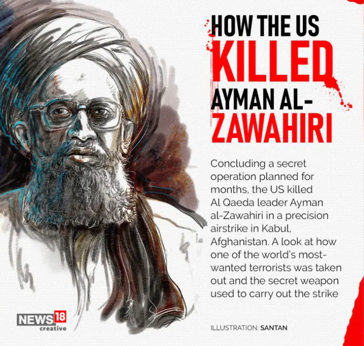 美国结束了计划了几个月的秘密行动,在阿富汗喀布尔的一次精确空袭中杀死了基地组织领导人艾曼·扎瓦希里。看看世界上最受通缉的恐怖分子之一是如何被带走的,以及用于进行罢工的秘密武器。