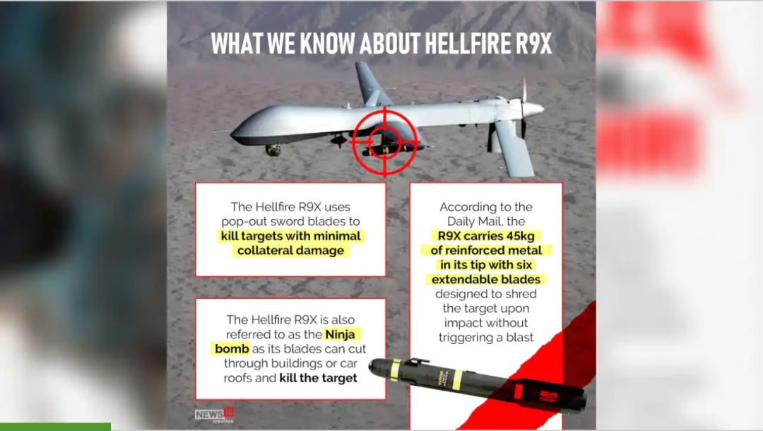 一架无人机向扎瓦希里发射了两枚Hellfire R9X导弹,当时他走到喀布尔安全屋的阳台上。