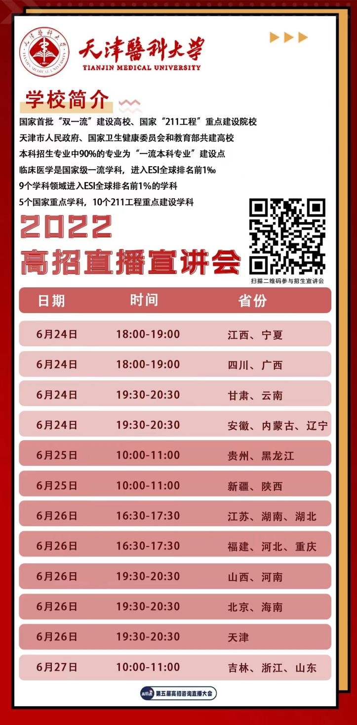 直播预告 | @全体考生:天津医科大学2022年分省高招直播宣讲会即将开幕