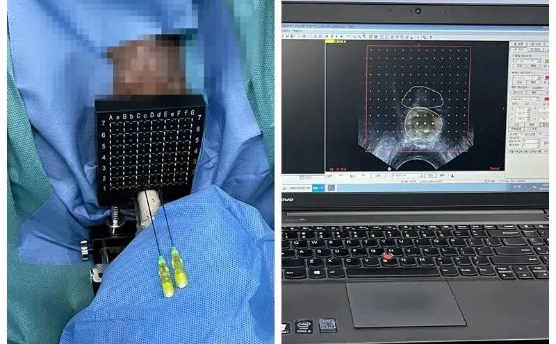 前列腺癌粒子植入术,即前列腺癌近距离治疗,是通过计算机治疗系统和B超引导下经会阴模板的准确定位,将放射性粒子均匀地植入前列腺内,碘125放射性粒子可产生β射线,半衰期为59.8天,可在前列腺癌组织内持续发出β射线,提高前列腺的局部剂量,适用于早期前列腺癌患者,也适合于不能耐受前列腺癌根治术的高龄前列腺癌患者。