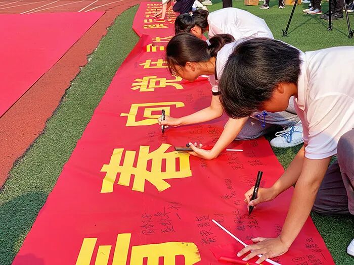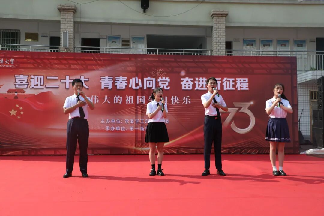 本次活动由校党委学工部、校团委主办,第一临床医学院承办。活动前,第一临床医学院还安排了签名送祝福活动,900余名2022级新生在“青春向党庆国庆,踔厉奋发新征程”的巨大横幅上签名,激励自己青春向党、踔厉奋发,勇做新时代的领跑者,为实现中华民族的伟大复兴贡献青春力量。