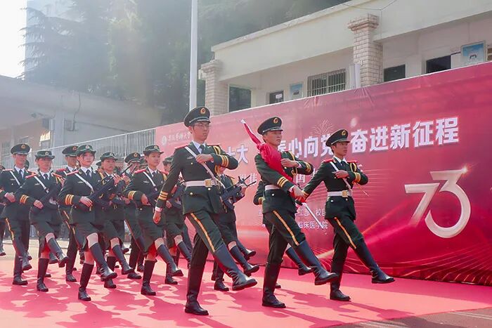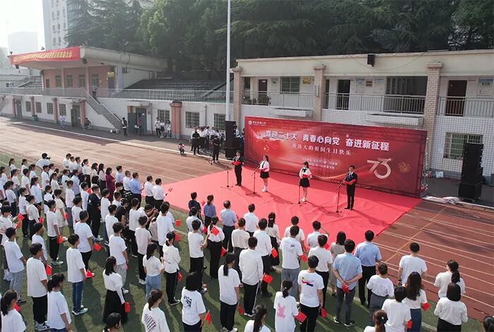 晴空万里,艳阳高照。10月1日上午,我校“喜迎二十大,青春心向党,奋进新征程”——热烈庆祝中华人民共和国成立73周年升旗仪式暨“国旗下的我们”主题教育系列活动在校本部体育场隆重举行。校党委书记顾家山出席活动。学校近千名师生代表齐声高歌,为祖国母亲献上最美好的生日祝福。