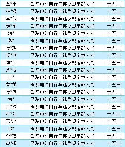 对互联网租赁电动车使用者有闯红灯、逆向行驶、进入机动车道行驶、违法停车、不佩戴头盔、违法载人等违法行为的,一律录入“黑名单”管理,录入“黑名单”的用户,根据不同的违法行为给予相应时间的限制使用租赁互联网租赁电动车服务,限制使用时间到期次日恢复该用户租赁互联网租赁电动车使用服务功能。