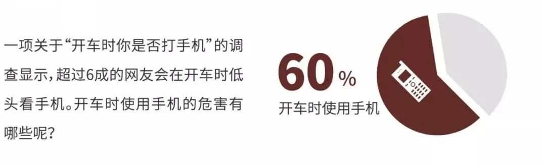 看一眼手机最少需要3秒,假如以60km/h的时速开车,那么3秒钟就会盲开出约50米,极易诱发交通事故。