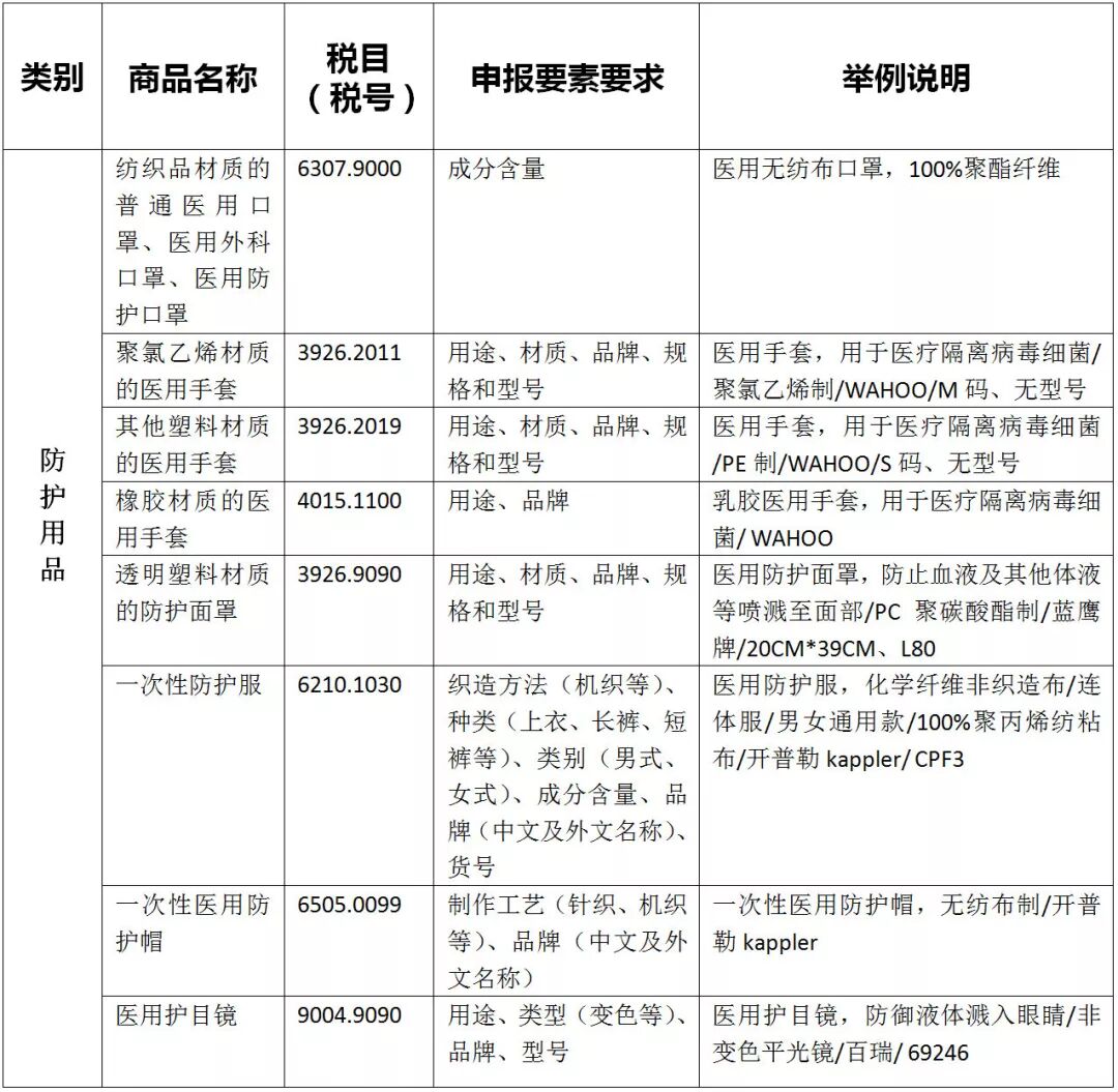 面对国内新型冠状病毒肺炎疫情,为满足国内疫情防控需求,努力打赢疫情防控狙击战,来自国内外的爱心人士和企业纷纷伸出援手,组织进口大量疫情防控物资,前几期的关税聚焦,我们介绍了疫情防控物资的归类知识,近期,小编也接到了疫情防控物资进口申报方面的咨询,为便于大家更加便捷、准确地完成申报,保障疫情防控物资顺利通关,小编根据2020年版《中华人民共和国海关进出口商品规范申报目录》整理汇总了主要疫情防控物资的商品规范申报内容,供大家参考。