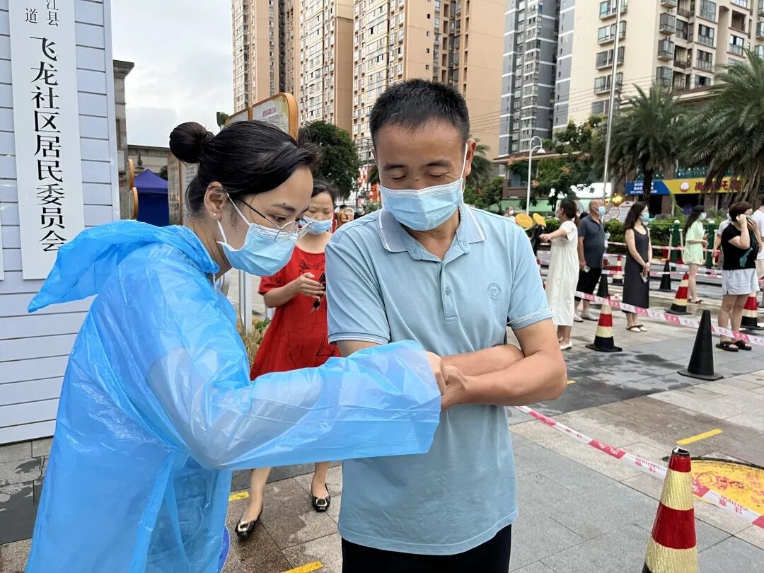 飞龙社区党委迅速招募辖区内的党员、退役军人、教师等志愿者40余人成立党员突击队,构建起“社区—网格—小区—物业”四级管理机制,采取电话、微信、入户、扫街等形式紧急排查3697户居民和411个商家、企业、学校,排查出14天内来(返)蒲人员556人,精准管控人员115人,已组织动员5000余名群众开展第一轮全员核酸检测,通过成立封闭管控、物资保障、心理疏导等工作小组,全面保障封控区内每家每户生活需要和心理需求。