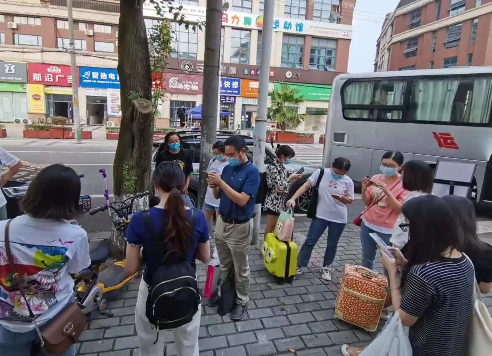 “蒲江核酸采样队已顺利抵达......”在成都锦江区某酒店门口,蒲江支援锦江区核酸采样队总领队左松林正向锦江区疫情防控相关负责人汇报到达情况。8月26日上午10点,蒲江支援锦江区核酸采样队紧急从蒲江出发,到达入住酒店后,还没来得及放下行李就接到了紧急任务——立即前往锦江区某封控管理小区开展上门核酸采集。