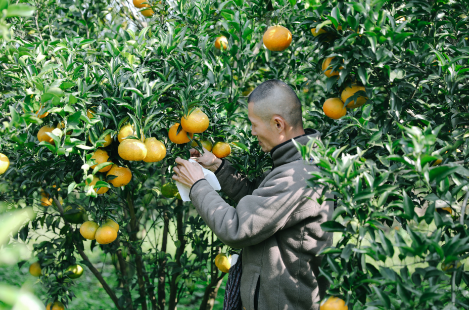 这些彰显“身份”的丑柑来源于铁牛村新村民潘豫君改造的9亩果园。而这也是蒲江县第一批“两个替代”农产品,2.6万斤生态丑柑畅销北上广深等大城市的高端商超,单价均超过10元/斤,是市场均价的3倍以上。