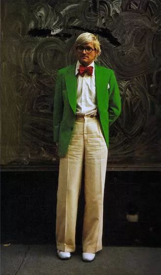 霍克尼的穿着总是轻松而自信的。他的衣服看起来很生活,他们拥有一个共同的空间,自成一派。无论是随意的学院派还是正式的萨维尔街风格,用力过猛和滑稽从来不会出现在他身上。因此,霍克尼因自己独特而恰到好处的时髦风格而备受赞赏,甚至还被安迪·沃霍尔(Andy Warhol)和传奇人物赫尔穆特·牛顿(Helmut Newton)拍摄过。