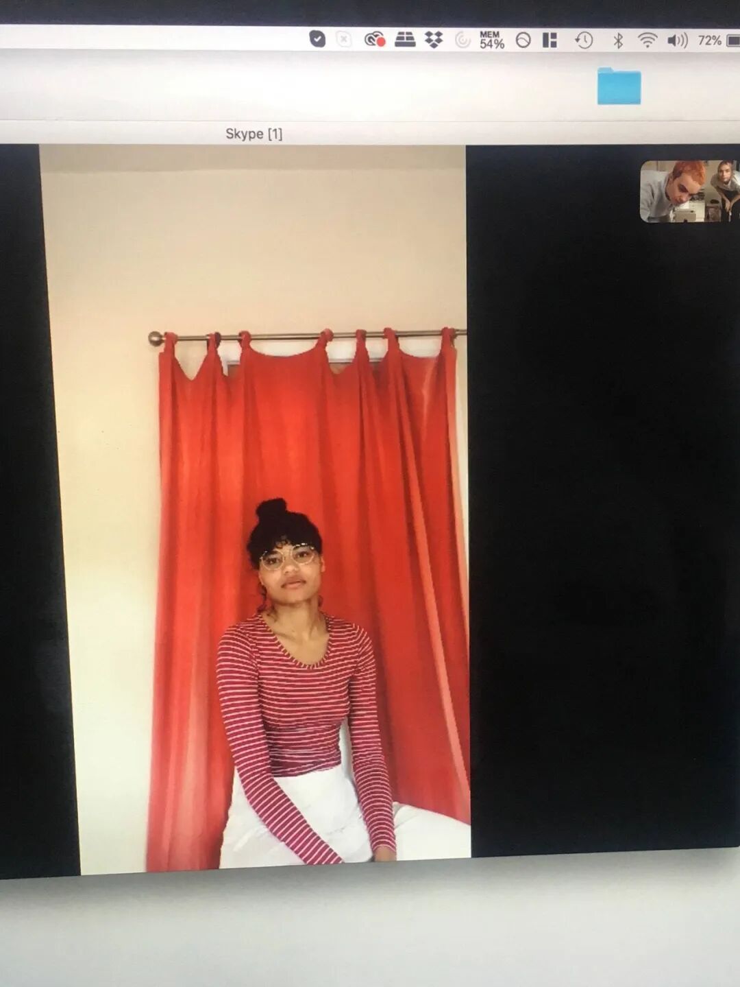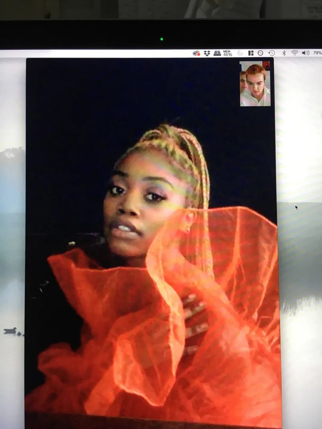 我们似乎可以理解,为什么 Glazzard 的肖像摄影会成为教学案例,不仅出于它们的技法、构图和内容,同时也因为它们完全展示出了“拍照”的工具:一台剩余电量 68%的电脑,一个长方形的应用窗口,互联网连接两端的两张脸——它们,如今已是我们与外部世界的纽带。