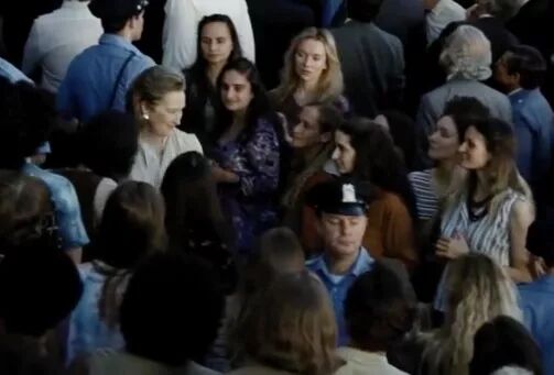 电影有一幕非常耐人寻味:Kay Graham 走出最高法院,她没有像《纽约时报》出版人 Sulzberger那样接受膜拜,而是悄悄地绕过人群,从侧面拾阶而下。台阶两旁站满了年轻女人,崇拜地注视着她,如同注视先知。