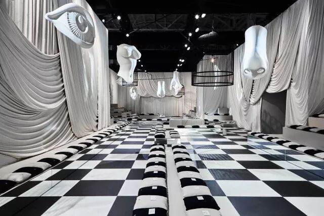 在某个看起来极不真实的时空中,黑与白的光影四处投射,你无法寻觅到这个空间的边界,并在其中逐渐迷失、丧失自我,直到消失在这个“超现实”的维度之中。这并非另一部诺兰的科幻大片,而是来自 Dior 二零一八春夏高订系列与雕塑艺术的梦境重叠。