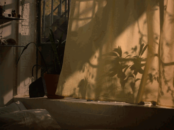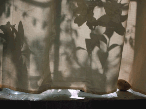 这些水墨画投射在男主角的赤裸后背上,在肤色的衬托下又变为身体绘画。光影斑驳的早晨让黑暗彻底消失,以暧昧模糊的“影子剧场”开启全新的一天。