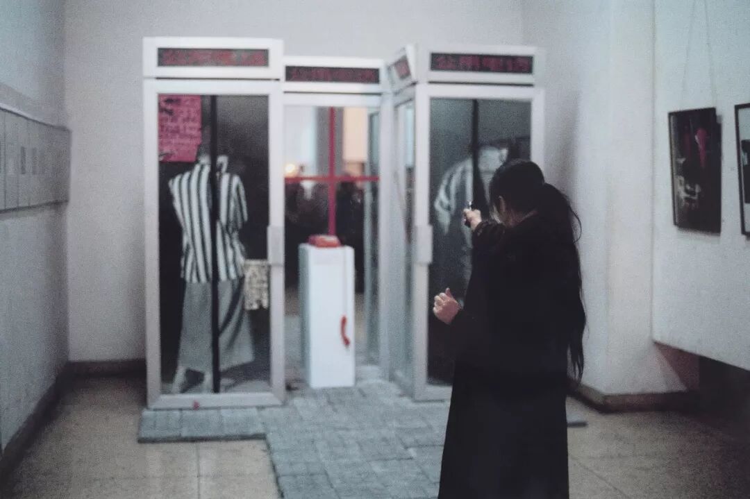 比如在1989年,肖鲁在中国美术馆对着自己的作品《对话》中的镜子,连开两枪。肖鲁的《对话》是两个并列的电话亭,玻璃上印的是等人高的一男一女,中间是一个下垂的电话听筒,后面是镜子。