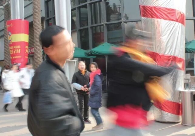 比如李燎的《一记武汉》中,在湖北省武汉市武昌区光谷步行街入口,李燎闭着眼睛等待一位“网友”给自己一记耳光,然后持续保持闭眼的状态直到实施者离开,结束。前面几分钟的等待,都是为了最后的耳光积蓄着能量。