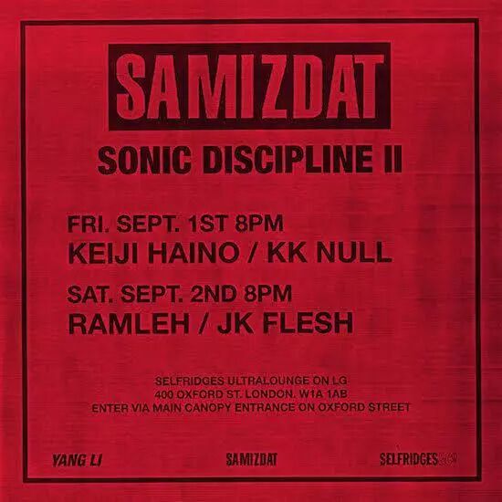 由其主理的 Samizdat 品牌,就是一个虚拟的工业噪音厂牌,所有“周边产品”,都是围绕着 Sonic Discipline 这一系列现场演出而推出。