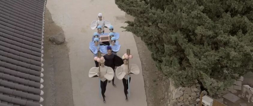 短片中的葬礼在韩国某处乡下,以戏剧表演的形式呈现。在韩国传统建筑中,演员们身着现代戏剧的服装,装扮成鸟儿,为男主角 Jin Hyuk Jang 举行葬礼。