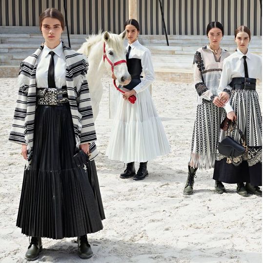 在一系列女权主题的 Slogan T恤后,Dior 2019早春秀场上,她借助马术竞技中的力量和自由精神又一次为她的女权宣言展开了一次视觉化的政治演讲。