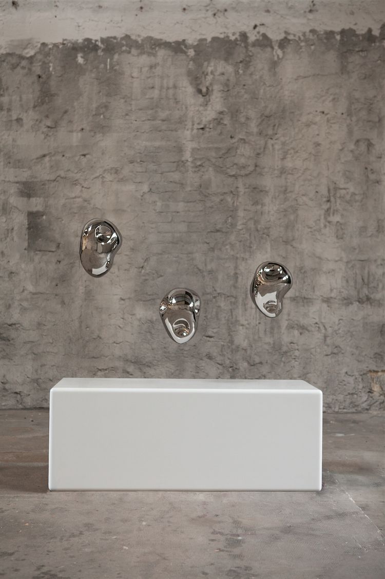 塔克西埃最近的一个新系列是一些白色凹凸的光滑陨石状雕塑。两个月前,他重回自己的童年所在地,将这一颗颗白色雕塑放置在沼泽湿地中的不同空间。