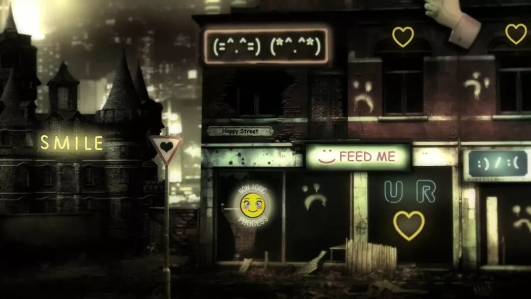 视觉表现略显夸张的各式市场营销手段,也与现实相去不远。直到地洞老鼠开始窥视、“Smile”标志无处不在的现实世界凋零无光、中年媒体商人盯着可爱心形显示器中的小女孩意淫陶醉,暴力不堪的一面逐渐展现,让观众开始感到头皮发麻。