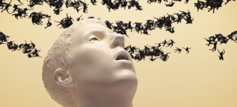 头颅于黑暗中独自低吟,或是与自我对话;口中流淌出黑色的毒液,幽暗的意识化身绳索和铁腕,桎梏头颅几近窒息;由无数个 Oliver Sykes 组成的个体如瘟疫般于头颅上空盘旋,随即倾灌于口中……在令人毛骨悚然的视觉效果下,Oliver Sykes 曾经历的痛苦、沮丧、愤怒等复杂情绪,似乎变得更具切肤之痛。