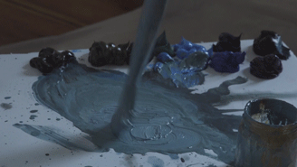镜头不断在绘画现场和莎莎自述间切换。画布前的刘小东三两笔便勾勒出了莎莎的风韵和周遭环境的纹理,我们当然知道他是技法精湛、情感细腻的画家,但亲眼目击这一切仍旧令人惊叹。