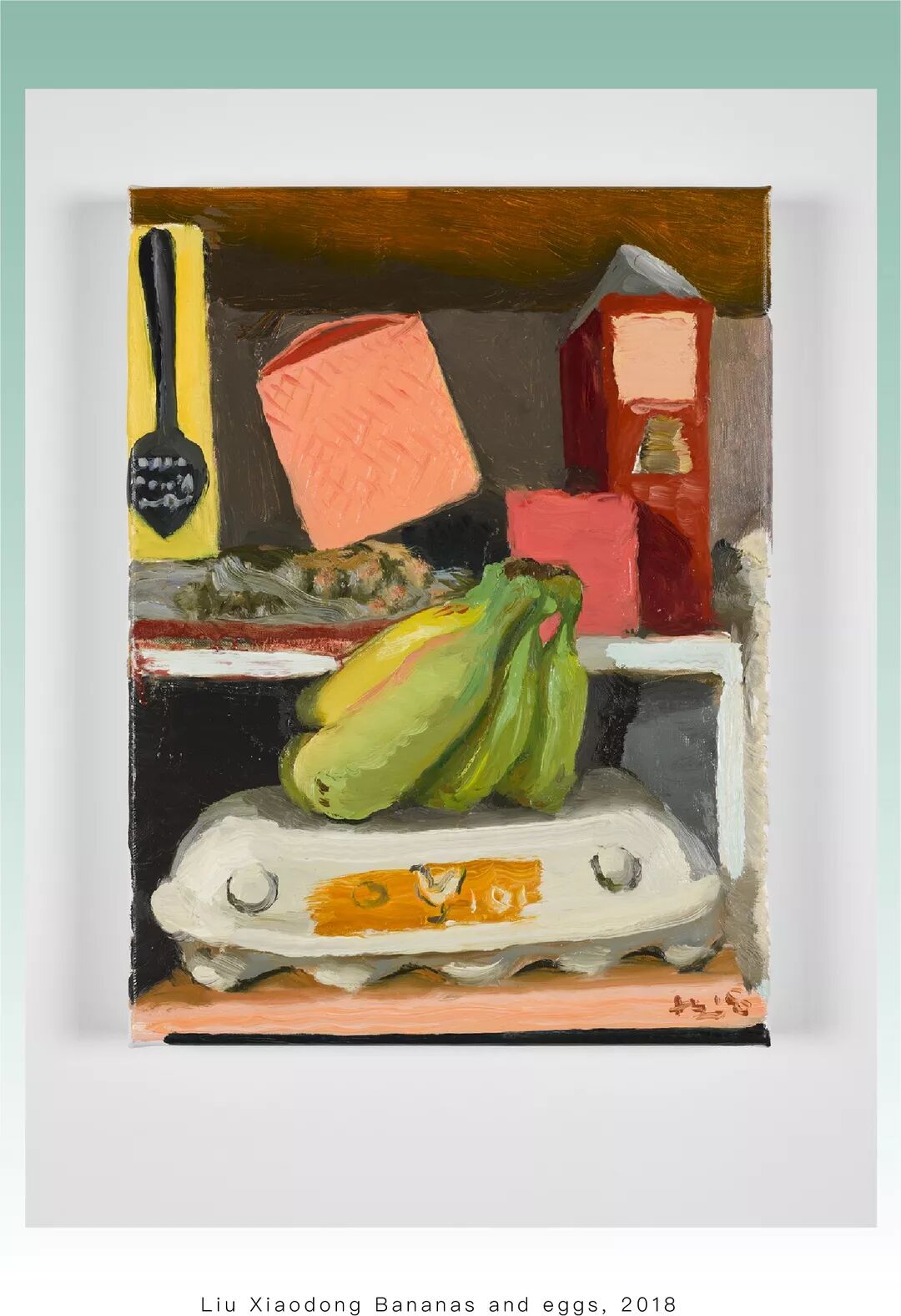 对方惊了一下,似乎没有听清楚的样子,赶紧拿来录音设备要他再说一遍。“我喜欢这墙的颜色,灰色的,蓝色的,在绿色、灰色、蓝色之间的一种颜色,三种颜色混合的墙。”刘小东断断续续地蹦着单词。他的英文并不流利,但正因为如此,字字倒反而掷地有声。
