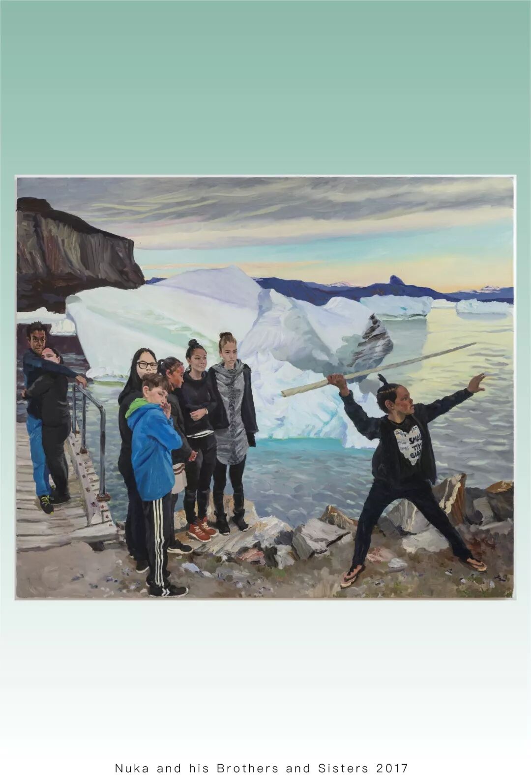 “没有立场”的刘小东对于所有异文化的世界都充满着好奇心。他曾前往德令哈和玉树,在和田的河滩上搭建临时工作室,描绘当地的维族民众;他也曾驻留意大利托斯卡纳地区的华人城镇普拉托,记录那里的移民生活;两年前,他更是不远万里前往格陵兰,为的是写生北极圈孤儿院中的孩子们。