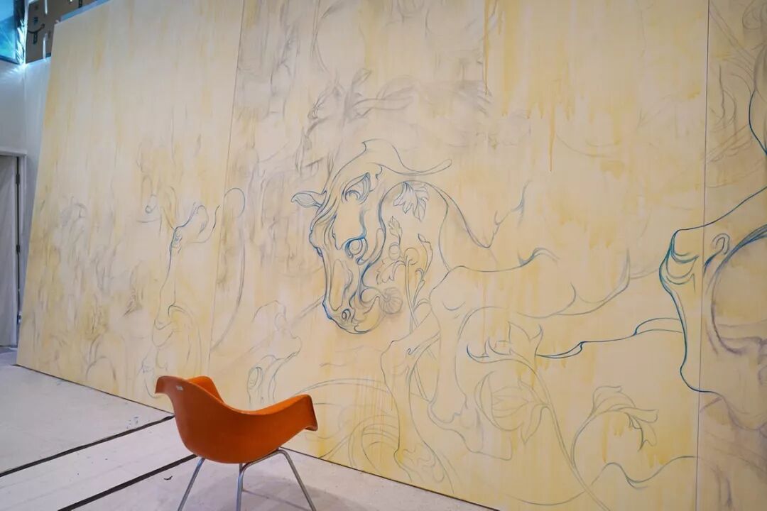 韩国乐天美术馆(Lotte Museum of Art)正在展出的 James Jean 大型个展“永恒的旅程”(Eternal Journey),以五方色(Obangsaek)这一道教概念开篇,每一幅新作对应青、赤、白、黑、黄其中一种颜色,这也呼应了他一直以来的创作方式:无论在一幅画中使用多少种颜色,色彩的基调却从不模糊。