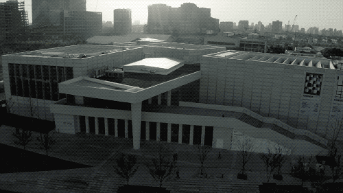 东西两侧各设置了入口,人们可以通过西侧的龙腾大道和东侧的滨江步道进入美术馆。