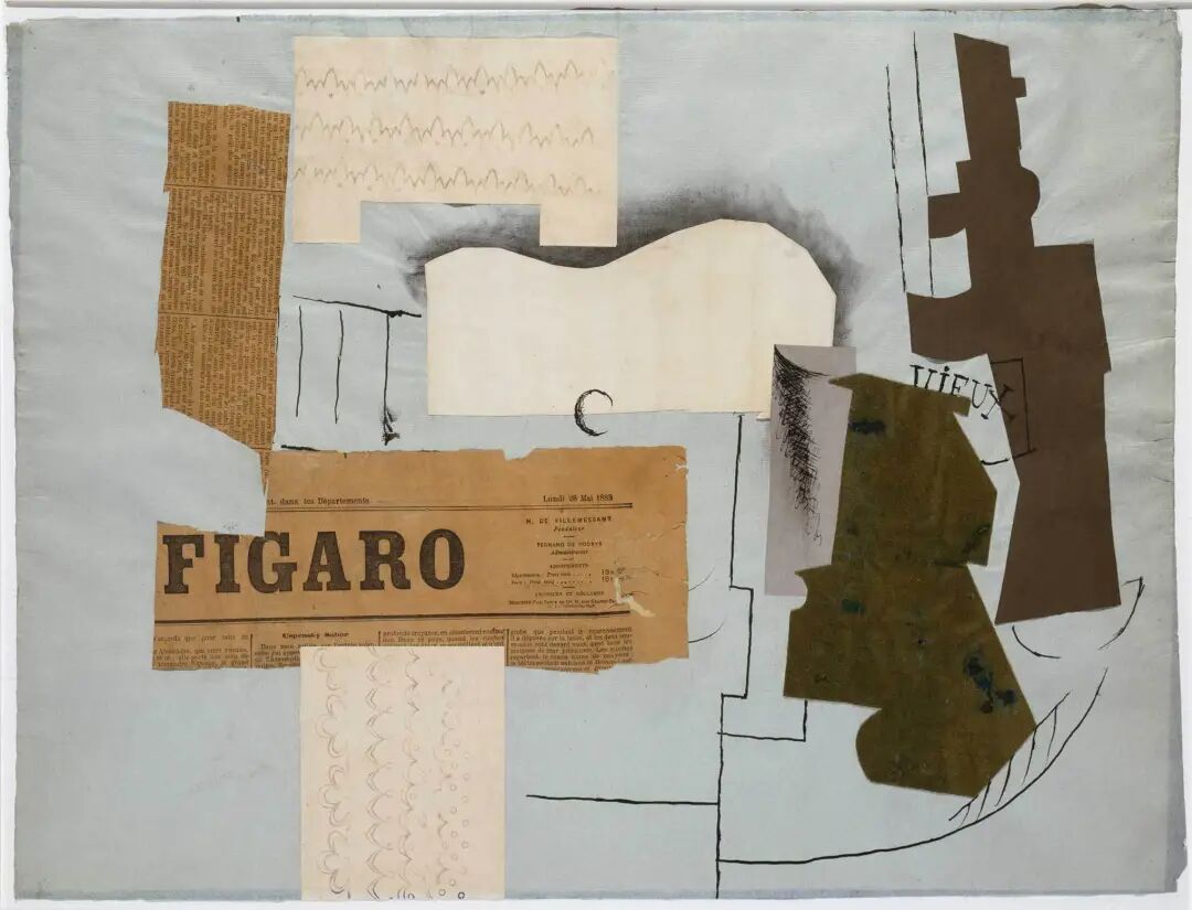 1910 年前后,毕加索和另一位画家乔治·布拉克为了挑战传统油画的三维空间思维,开创了立体主义画派,同时率先把拼贴这种形式引入艺术创作中。他们的拼贴素材除了自己画完剪下来的剪纸,还经常用到新闻纸和各种有花纹的特种纸,主题则和绘画差不多。