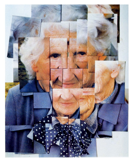 类似的拼贴作品还可以参考电影《空房间》里女主的个人写真,如果你有一张黑白的、质感很好的人物肖像照,可以考虑把它分成不等比的九宫格,剪裁后打乱顺序,再重新拼贴,会得到意想不到的效果。