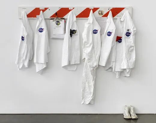 对太空和NASA 的喜爱渗透在 Tom Sachs 生活的方方面面,他将工作室改装成类似宇航局的样子,自己也经常穿着类似 NASA 风格的制服。他在 2007 年和 2012 年的展览「SPACE PROGRAM」和「SPACE PROGRAM:MARS」,更是直接等比例模拟出了人类登月和火星探索的各种场景,从部件图到说明书一应俱全,堪称最关心航空航天事业的艺术家。