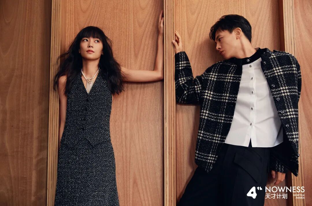 尹昉:黑白格纹斜纹软呢外套、立领衬衫 均为CHANEL