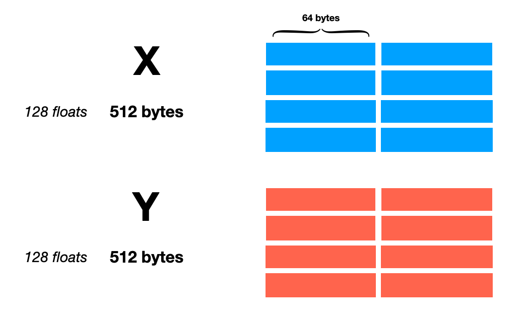 /only set for k == 0uint64_t reset_z = 1ull << 27;for (uint32_t k = 0; k < K; ++k) {uint64_t idx = k % 4;// 64 bytes = 16 floatsAMX_LDX ((uint64_t) A + k * 64);AMX_LDY ((uint64_t) B + k * 64);//now we do 4 indepedent outer products (avoiding pipeline hazards)AMX_FMA32 (reset_z);reset_z = 0;}