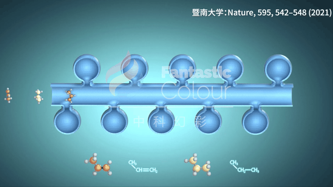 暨南大学李丹教授团队报道了一种具有嵌入分子口袋的MOF材料,在基本不同的压力下向丙烯和丙烷开放,提出了下一代筛分材料设计,在吸附分离中有巨大的潜在应用。相关研究工作发表在国际顶级期刊Nature上,中科幻彩为其成果设计制作了科学原理演示视频动画。