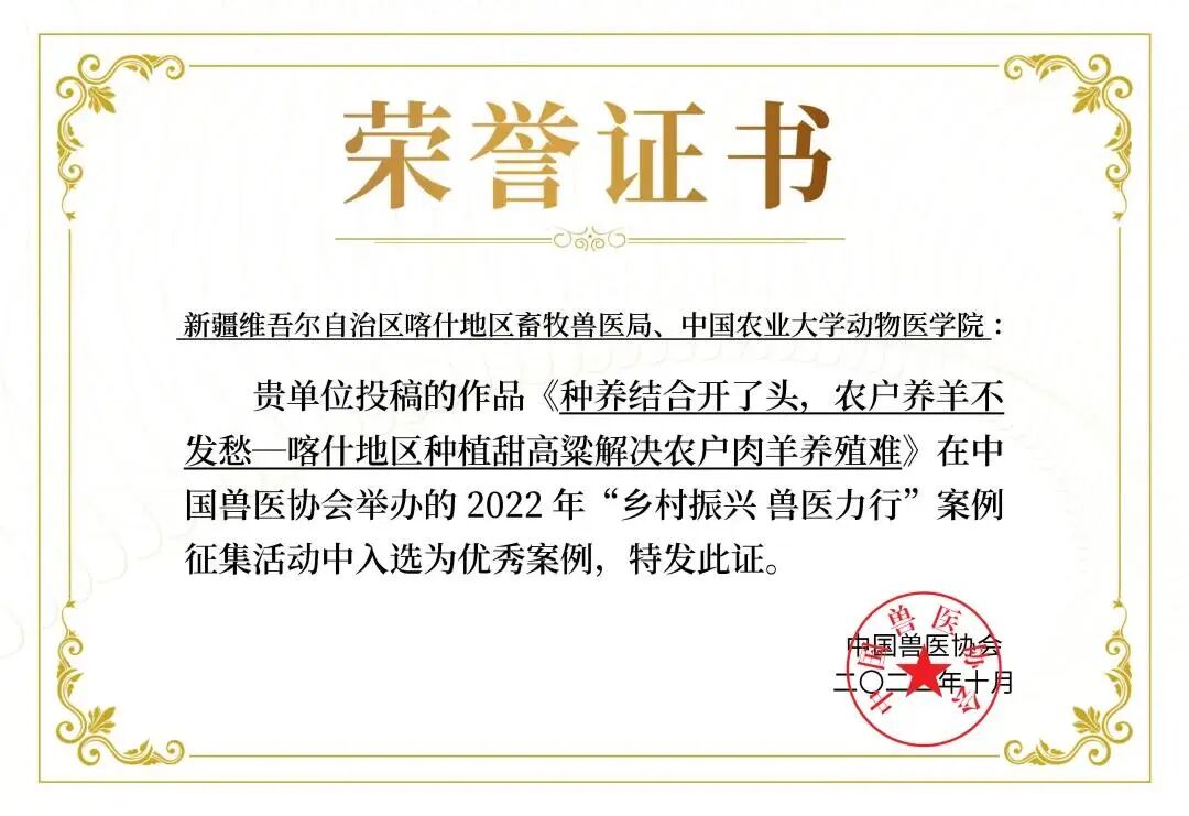 组织团队撰写案例,获中国兽医协会“乡村振兴,兽医力行”优秀案例奖