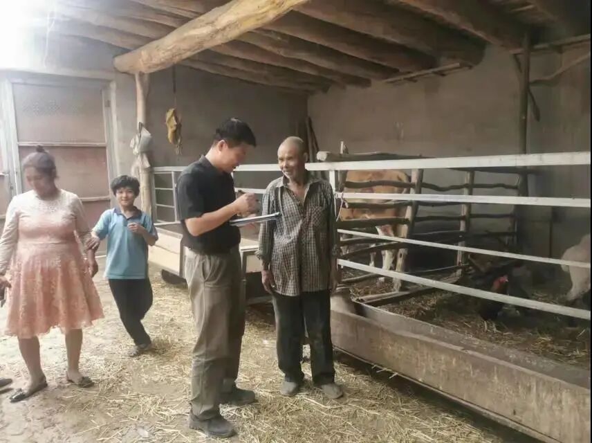 走访基层问需纾困,扎根一线苦中有甜。要想不辱使命、不负期望,快速理清工作思路,助力地方发展,深入基层、调查研究是最基本的工作方法。刚到喀什的李靖因不适应环境产生了皮肤过敏的症状,但他仍在三个月内足迹就遍布了喀什地区12县市的良繁中心、规模化养殖场和基层农户,完成畜牧业相关调研报告达6篇,既为地区制定相关政策提供了理论依据,也快速、广泛、深入地掌握了基层情况。为了更接地气地问需纾困,发现和解决规模化羊场的实际问题,李靖利用“五一”假期休息时间,直接入驻喀什地区规模最大的肉羊养殖场 – 位于戈壁滩上的喀什中昆新农业有限公司肉羊养殖基地,与一线工作人员同吃同住,每日与场长、饲养员、驻场兽医共同巡圈查羊,针对场内养殖情况形成上万字的调研报告提交行署。驻场期间,这位众人眼里身份特殊的“局领导”和基层技术人员完全打成一片,耐心地给他们讲知识做培训,场内的维族青年工作人员都亲切地喊他“师父”,这位“师父”还亲自带着“徒弟”们抓羊打药、给羊做手术、做羊的剖检,是大家眼里真正的“羊博士”。
