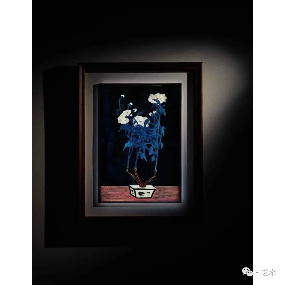 常玉 《青花盆与菊》 91×62cm 油画纤维板 1950年代