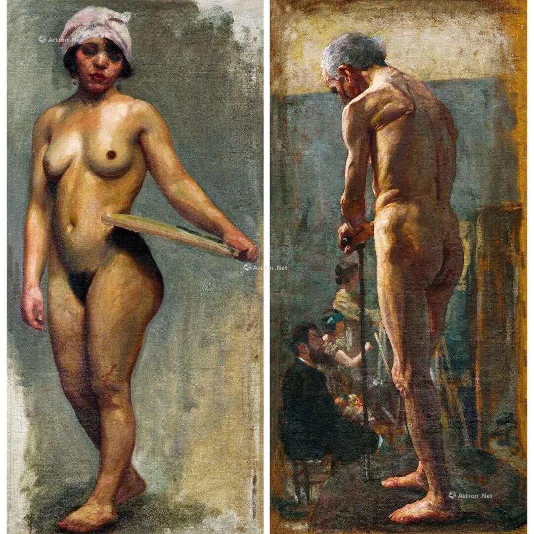 徐悲鸿《人体肖像双面画》73.5×35.5cm 布面油画 1920