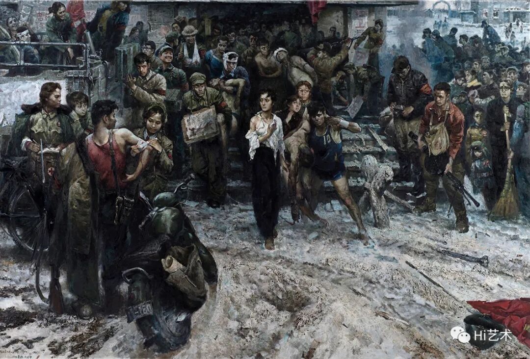 1978年,高小华以《为什么》首开“伤痕美术”先河,以前所未有的姿态反思文革、批判现实而成为颇具划时代意义的经典之作。1981年,他创作的巨幅油画《赶火车》以全景式的构图和宏阔的场面再现国情民生,开创了后文革时代艺术直面现实与人生的理念。这件被誉为油画的“清明上河图”,于2003年被收藏家刘钢以363万元买下,成为当年拍场的一大焦点。高小华 《赶火车》(三联) 155×450cm×3 布面油画 1981