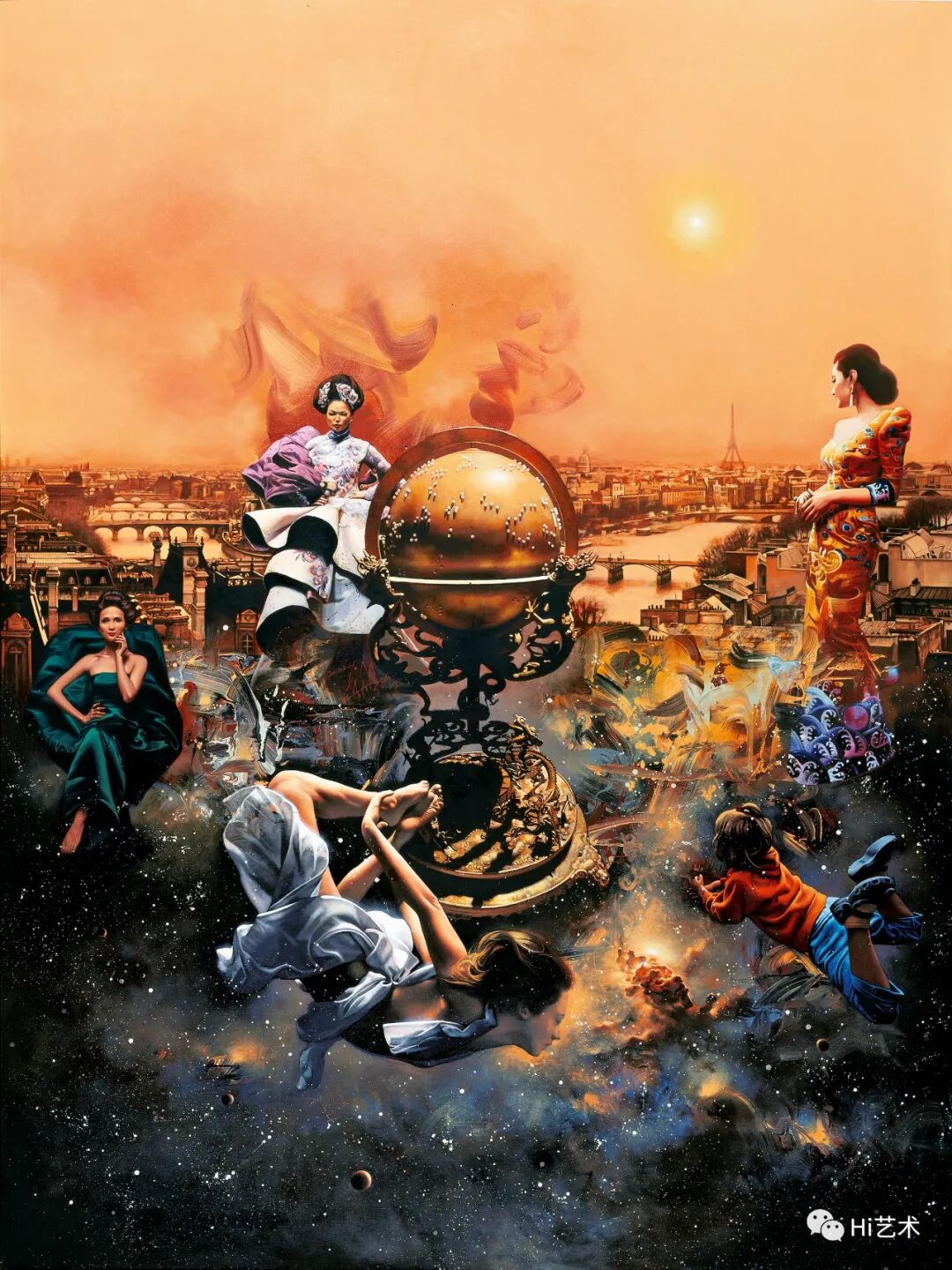 当我们说“80后”艺术家开始登场了,高瑀始终是一个绕不过去的名字。作为中国第一位拍卖价格过百万的“80后”艺术家,在当代艺术的高光聚焦在“卡通一代”的那段时间里,高瑀的名字高居榜首。出道之初,他的作品便分别接连拍出同龄艺术家的高价记录。2008年,高瑀的作品《打虎》以112万元成交于北京翰海春拍时,他只有二十来岁。在顺风顺水的艺术生涯之后,他回到了重庆,回到了绘画的舒适区。高瑀《打虎》300×450cm 布面丙烯 2007,以112万元成交于2008年北京翰海春拍,系艺术家个人拍卖纪录作品高瑀 《一年是四月的三倍》 140×120cm 布面丙烯 2017在中国抽象艺术尚未梳理出传承关系的今天,李姝睿已被认为是年轻一代抽象画家的代表。尽管这种抽象的个人风格,只是基于她对光主题一以贯之的研究:她用喷雾的方式将丙烯颜料作于画面上的“光”系列,表现了城市中无数反射的光,或者说光这种感受本身。李姝睿《元神储存器 No.201708》 200×200cm 布面丙烯 2017相比于纯粹的抽象绘画,周思维的作品中反复涂抹的底色和若隐若现的色块、条带,显然有着日常的图像来源,但是这种来源似乎并不是特别重要。坦白说,周思维的作品难以归纳,我们也从未见到过他对于自己的创作进行解释的文章。或许对他而言,绘画正是那些图像被他所编辑和涂抹的过程,并在合适的时间停下画笔。周思维《日出日落》110×140cm 布面油画 2015赵要并不是典型的“川派绘画”艺术家,较之绘画作品,他的装置及观念作品更令人印象深刻。最近的一次是2018年,酝酿了3年的《自然的力量》在四川、青海和西藏经历了五个月的风吹日晒之后,被他搬到北京工人体育场呈现一天。从赵要的展览履历来看,早在2013年和2015年他便在佩斯画廊伦敦和香港空间举办个展,分别呈现了他同样以观念为支撑的绘画作品“精神高于一切”及“很有想法的绘画”。本科毕业在四川美术学院学习国画的马文婷,研究生考上了油画系,并获得罗中立奖学金。她的绘画作品是经过肢解后再重新组装起来的现实,自然与人文景观混乱共存。她甚至将具象形体、抽象几何色块并置,形成一个真实而又不合理的图景,借个人视角审视人与社会及时代的戏剧性关系。马文婷《一切 (系列) No.2》210×147cm 布面油画 2017中国“80后”艺术家的新“一哥”的地位,在郝量的拍卖价格连续打破千万元纪录时已然发生了改变。近几年,他在国内外艺术圈的表现有目共睹,先是被顶级画廊高古轩代理,紧接着凭借《壳》成为第一位跻身千万元俱乐部的中国“80后”艺术家。毕业于四川美术学院中国画系的郝量,以根植于中国传统的当代工笔画在年轻水墨艺术家中脱颖而出。