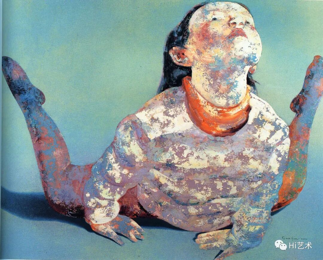 有人在求变,有人以不变应万变。陈安健就是典型的一位。在四川美院著名的“77级”那批成名艺术家中,他在罗中立、程丛林、高小华、何多苓、张晓刚这些名字里显得并不醒目。从20世纪90年代末踏入重庆黄桷坪正街上的交通茶馆开始,他笔下的画面几乎就没离开过这里,一画就是20余年,老老实实地用写实的方式形象地将热闹而俗气、粗莽而蓬勃的生活一一画下。陈丹青形容他是“一位无可救药的地方画家。”陈安健《茶馆系列—诺贝尔》 206×166cm 布面油画 2014祖籍福建的陈卫闽1982年毕业于四川美术学院,他试图在历史的土壤去找出不同于乡土记忆和伤痕绘画的一种言说形式,在表现主义中去找出一种如何对历史和正在发生的现实叙事。陈卫闽 《小洋房》 130×110cm 布面综合材料 2002“60后”艺术家们大多于八十年代在川美求学,虽然上承“77、78级”明星班,但少年时代便赶上了改革开放的他们,似乎注定与上一辈的乡土绘画、伤痕美术无缘。这批艺术家把目光更多地转向消费文化、商业社会和身在物欲社会中的人的精神状态,艺术家郭伟、何森、赵能智、忻海洲、艳俗艺术的代表人物——俸正杰等均在此列,也似乎恰恰是这一批“60后”艺术家,造就了如今我们对于川美的印象或者说“川美气质”。