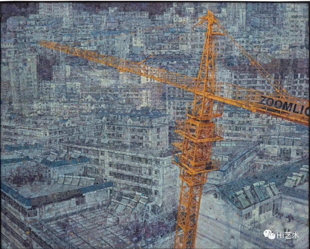 李强 《返境No.25》 200×155cm 布面油画 2010作为四川美术学院副院长、油画系教授,张杰在艺术教育领域的30余年的思考与践行,不但造就了个人绘画语言的表达与呈现,也从某种程度上反映出中国油画在当代的坚守、发展与变革。艺术家早期眷念乡土题材,画面中的线条、肌理和笔触成为了着重表现内容。在近期的创作中,张杰呈现了自然、人文与社会的探索与实验,纵横交错的笔触、肌理突出的画面形成了包含生命力的独特景观。张杰 《造城》 160×200cm 布面油画 2014