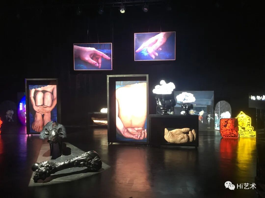 伴随流行文化长大的新一代,在“85后”后浪艺术家郝朗那里又发生了另一次创作美学的转变。毕业于四川美术学院油画系的他,作品中鲜明轻快的色彩、卡通人物带有情绪的面孔,是艺术家内心对于外界小心翼翼的试探与表达,并最终寻找到最适合自己的创作坦途。郝朗《摸着心脏说》200×200cm 布面丙烯 2016在2020年初做“80后”艺术家生存现状调查时,张钊瀛也参与了一个关于年轻艺术家生存焦虑的话题。与很多同龄艺术家相似,除个展之外,在群展中的频繁亮相让我们对他的作品并不陌生。他将戏剧化的元素作为绘画的表达,如同导演般对绘画进行独有的叙事安排。张钊瀛《泰坦之宴》尺寸可变 架上、影像、装置综合材料 2013-2018行为艺术家大多擅长利用自己的身体,童文敏便是其中之一。从只身躺在沙滩上任凭潮起潮落,到四肢绑着树枝弯腰爬行,再到捆绑四肢裸上身在台球桌上用身体打球,她的创作试图通过身体探知人在外界的现实处境,诗意而野性。近几年,她的创作获得了新星星艺术奖、华宇青年奖评委会大奖等多次学术认可,也得到越来越多的关注。蒲英玮的创作以文献研究的方式展开,四川美术学院的学习经历与法国求学和生活的经历,反映在他作品中对于中国本土境况在与其他文化语境的关照。我们很难用一句话简单描述他的作品,用他的话来说,“在我们的身边,还有很多人与很多事情,他们值得被记录、值得被表达,而他们却没有这样的机会;我总希望可以珍惜这个关于表达、关于转达的一份工作。”蒲英玮《时间,历史,我们:动荡之后,红色模式将在世界范围内流行》 200×170cm 布面油画、丙烯、喷漆、油漆笔、马克笔、纸质拼贴 2020