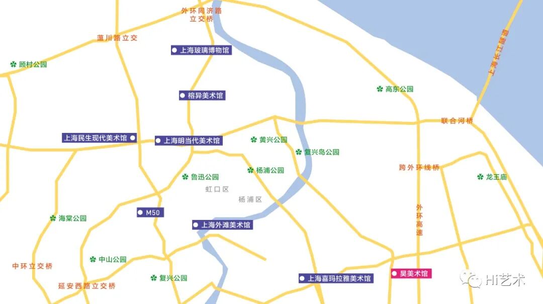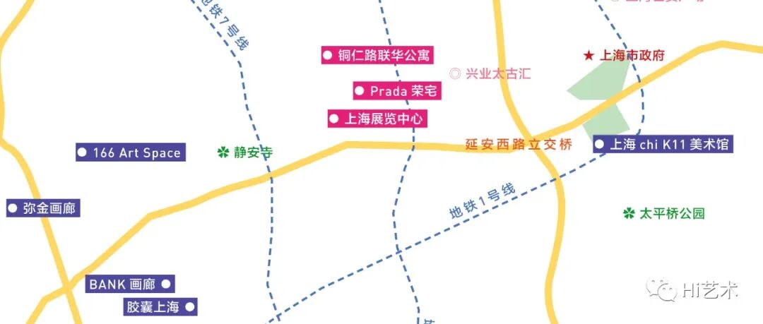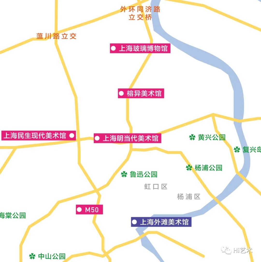粉色部分为当天推荐观展机构,小伙伴们可按地图路线行进
